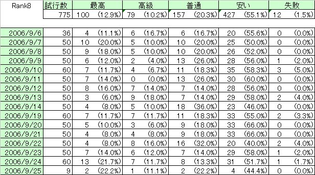 統計は後ほど掲載します。最高級の率なんかよりも、失敗の数が見事に1%前後になってる事に驚いた…w