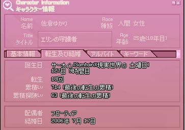 そんな事をよそに、久しぶりに転生しました。127日ぶりというキリのいい数字です。休止中は色々とやっぱり落ち着かなかったので、髪形はアイドルポニテに戻しました。そもそも髪型変更したのが、某"テ●ィ●最高(笑)"な人と同じ髪型だったのが吐き気するからという単純な理由だったりしますし。