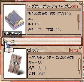 賢者の日記とバイブルを比較すると日記に軍配が上がるのですが、バイブルを過剰精錬すると簡単にひっくり返ります。攻撃回数では明らかに(当然ですが)日記が上なのですが、威力が追いつかず秒間ダメージはバイブルのが高い、という事になっています。