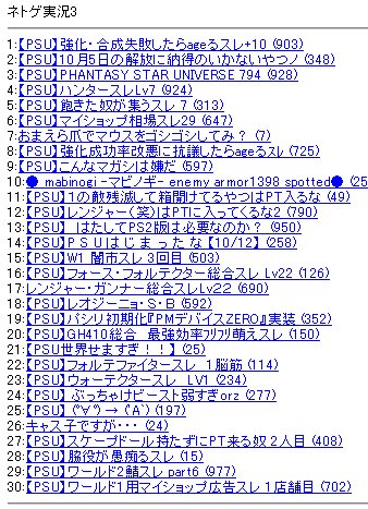 これは鯖ごとに違うのかもしれませんけれど、"晒しスレ"はいわゆる規律違反者…ぶっちゃけると、升利用者や蔵改、あるいはBOT等の行為を文字通り「晒す」スレでした。ご存知の通り、私はその方面には基本的に名前は出てきません。